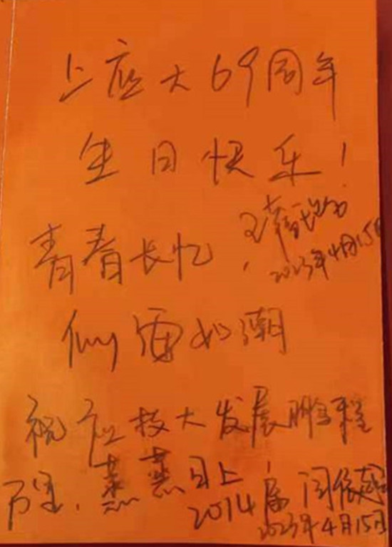 参观结束后,校友们对讲解员作出了高度评价,高度肯定了校史馆的工作,将内心的万千感触汇于笔尖,挥毫写下对我校的寄语。