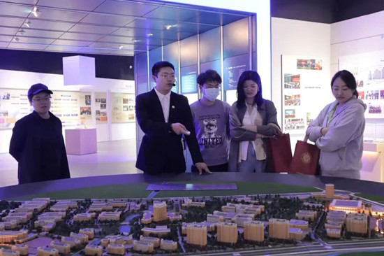 在参观的最后,校友们跟随讲解员漫步于艺术与设计专题馆,欣赏着艺术与设计专业优秀的作品,折服于师生的精湛画技与精心设计。踏上我校风景最好的观景台——正南方向观景台,校友们俯瞰知识之门,感叹汇入汪洋的活水,将上应美景尽收眼底,纷纷拿出相机记录了这次难忘的经历。